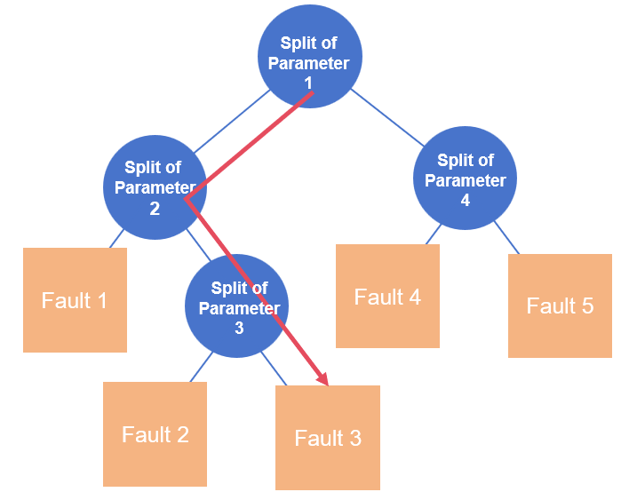 Using Random Forest as an example: the forest consists of many decision trees. Each tree votes for a fault category, and the majority vote wins.