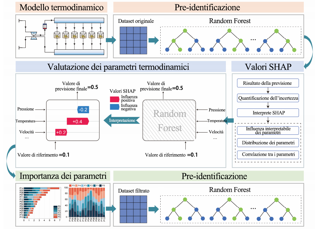 - Analisi di Interpretabilità: Il metodo SHAP viene applicato al modello addestrato per identificare i parametri termodinamici chiave e quantificarne il contributo ai risultati diagnostici.